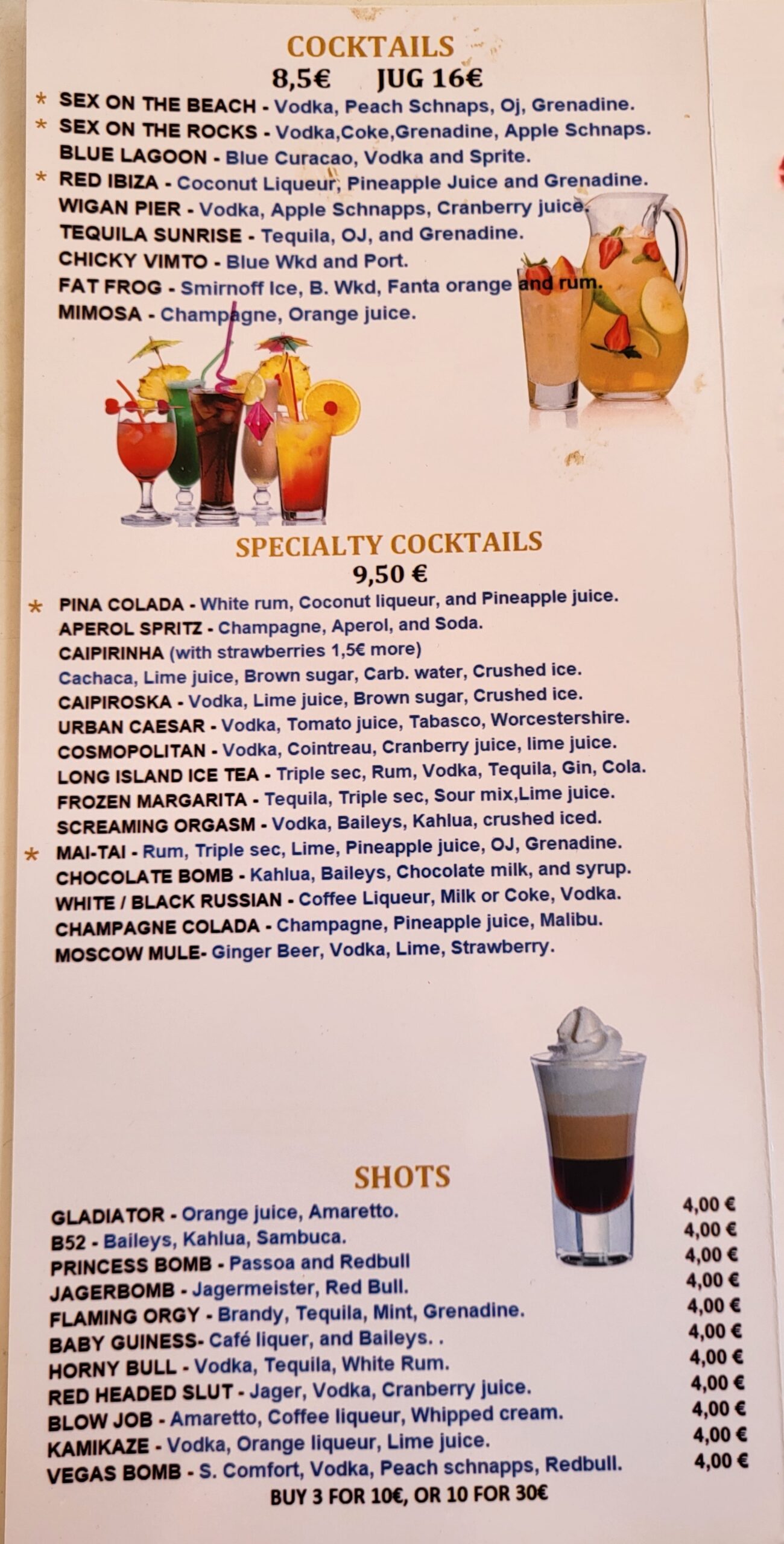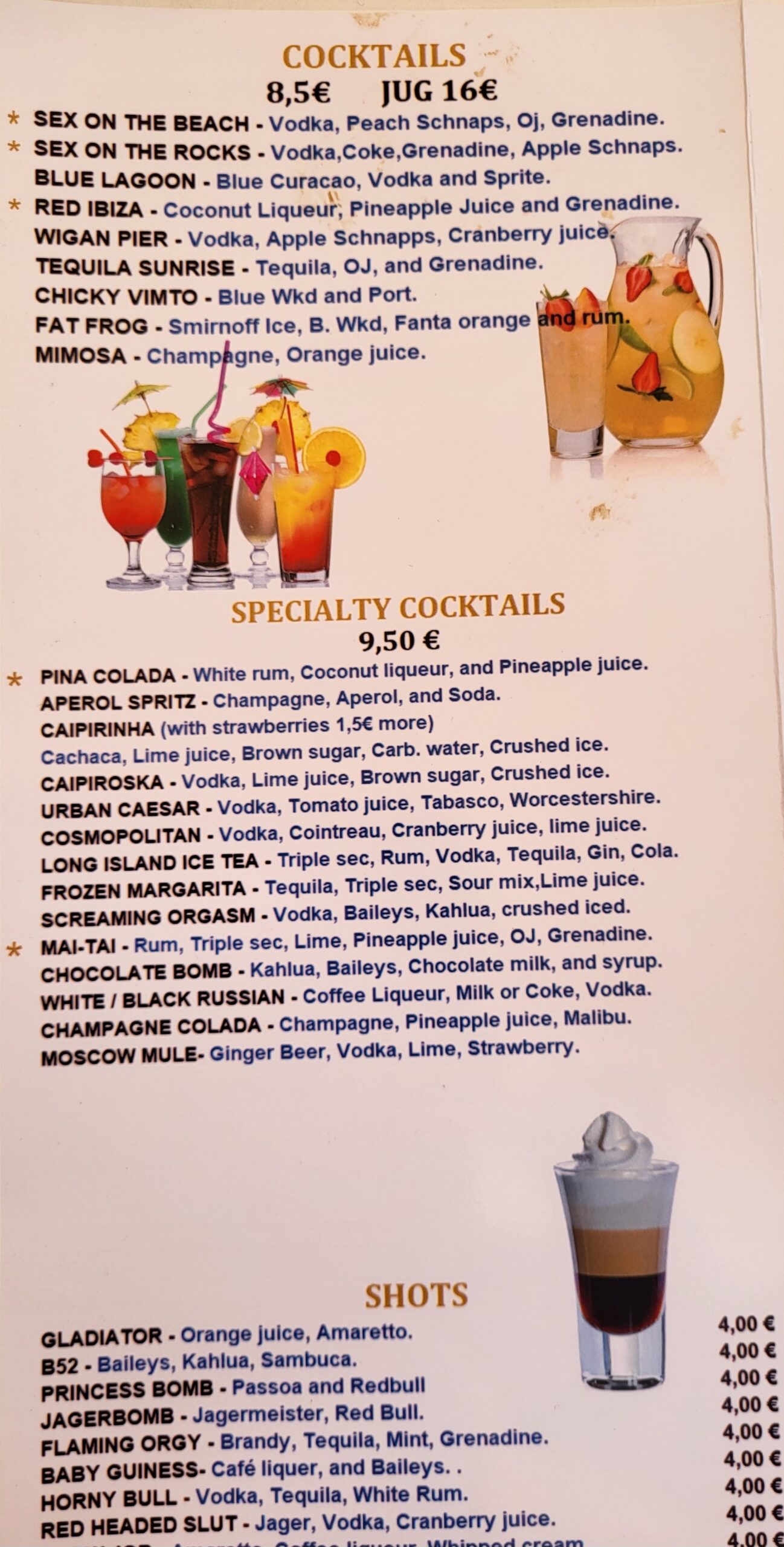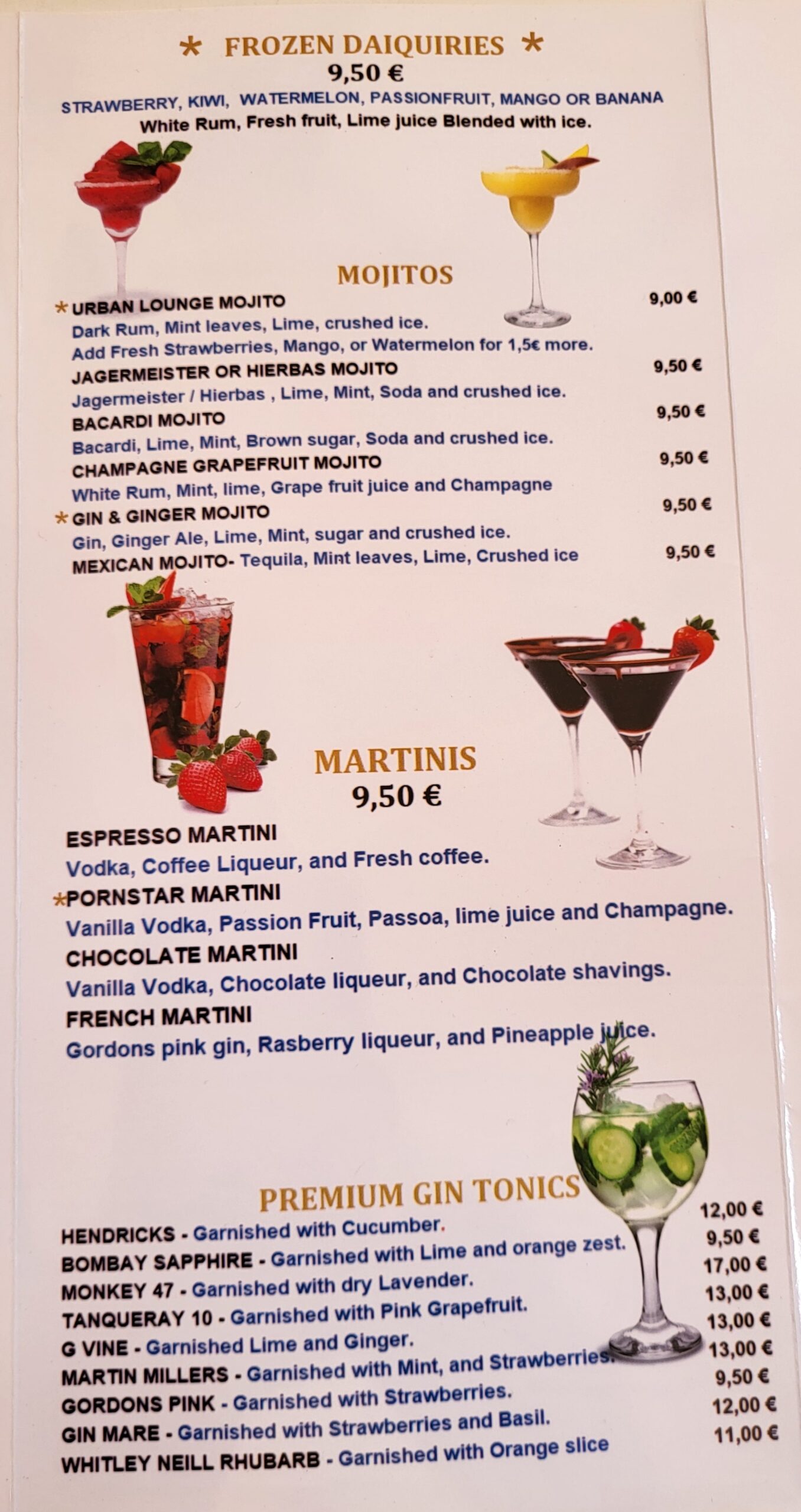 The extensive cocktail menu makes it hard to decide which one to choose and with prices starting from only €8.50  it won’t break your budget to try a few!